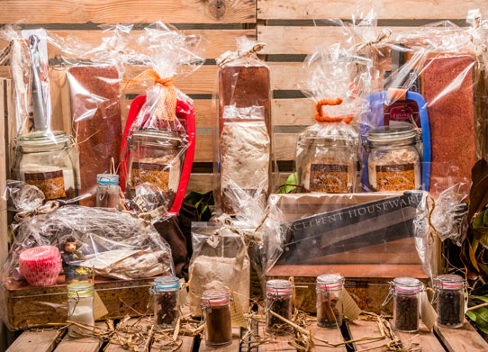 - Kruiden en specerijen in glazen weckpotjes Zoals: jeneverbes, eigen gemalen speculaaskruiden, hele steranijs, 4 kleuren peperkorrels, kaneelstokjes, stoofpot kruiden , gemalen anijs, glühwein kruiden en hele kruidnagel.